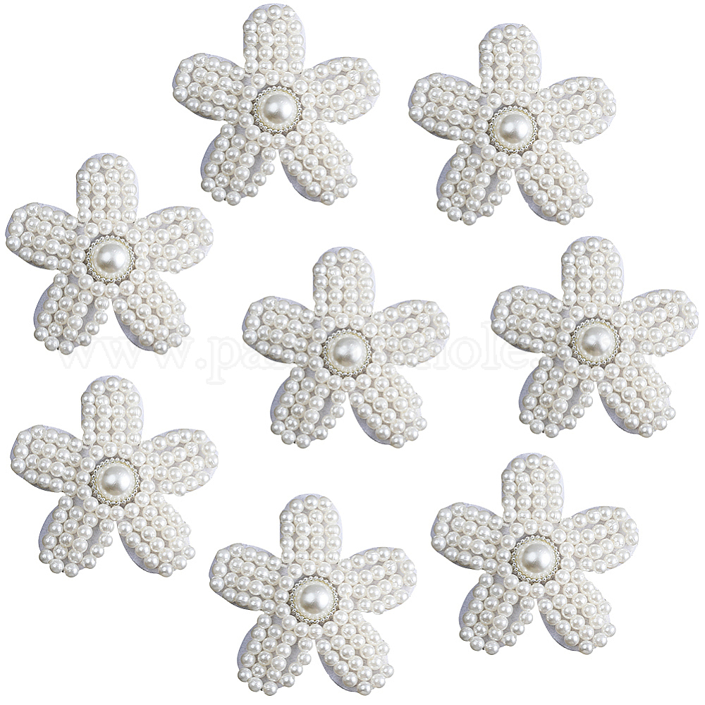 Аппликации из акриловых бусин с имитацией жемчуга, пришиваем украшения к фурнитуре, 5-лепестков цветка