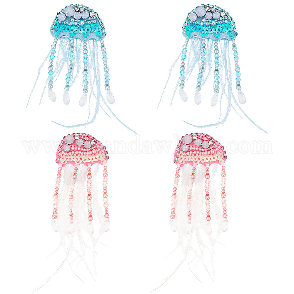 4шт 2 цвета медузы ручная работа аппликации из бисера, пайетки, перья и стразы, пришиваем патчи