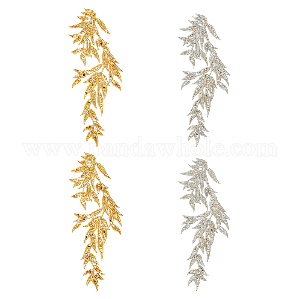 2 пары 2 цвета бамбуковый лист полиэстер компьютерная вышивка ткань пришивание кружевные аппликации, аксессуары для костюмов из пвх