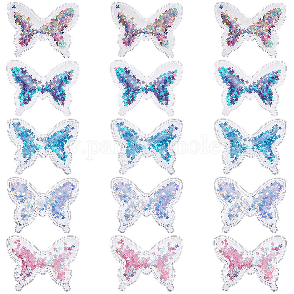40шт 5 цвета ПВХ украшения аксессуары, со звездчатыми блестками, бабочка