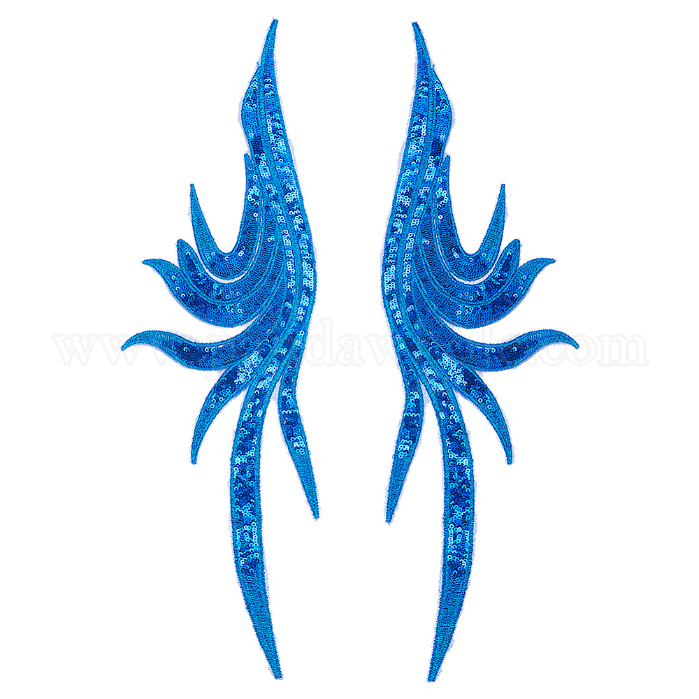 • Синий Цветочная вышивка полиэстер пришивные аппликации, с пластиковыми пайетками, украшение для свадебного платья своими руками, Cheongsam, синие, 512x137x1 мм