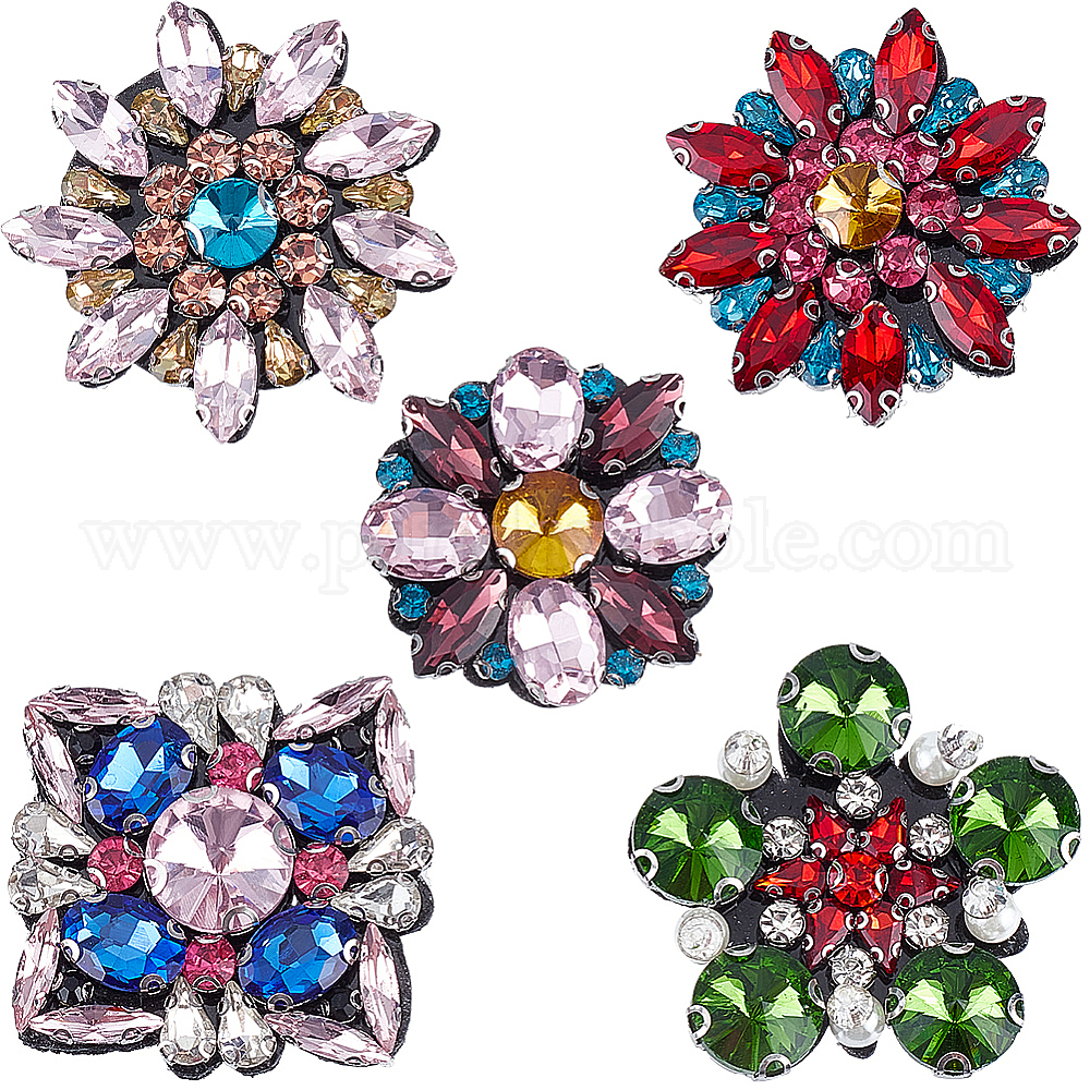 5шт 5 стиль стеклянные стразы бисер цветы аппликации, пришиваем заплатки из фетра, костюм украшение аксессуары (02NS8H)