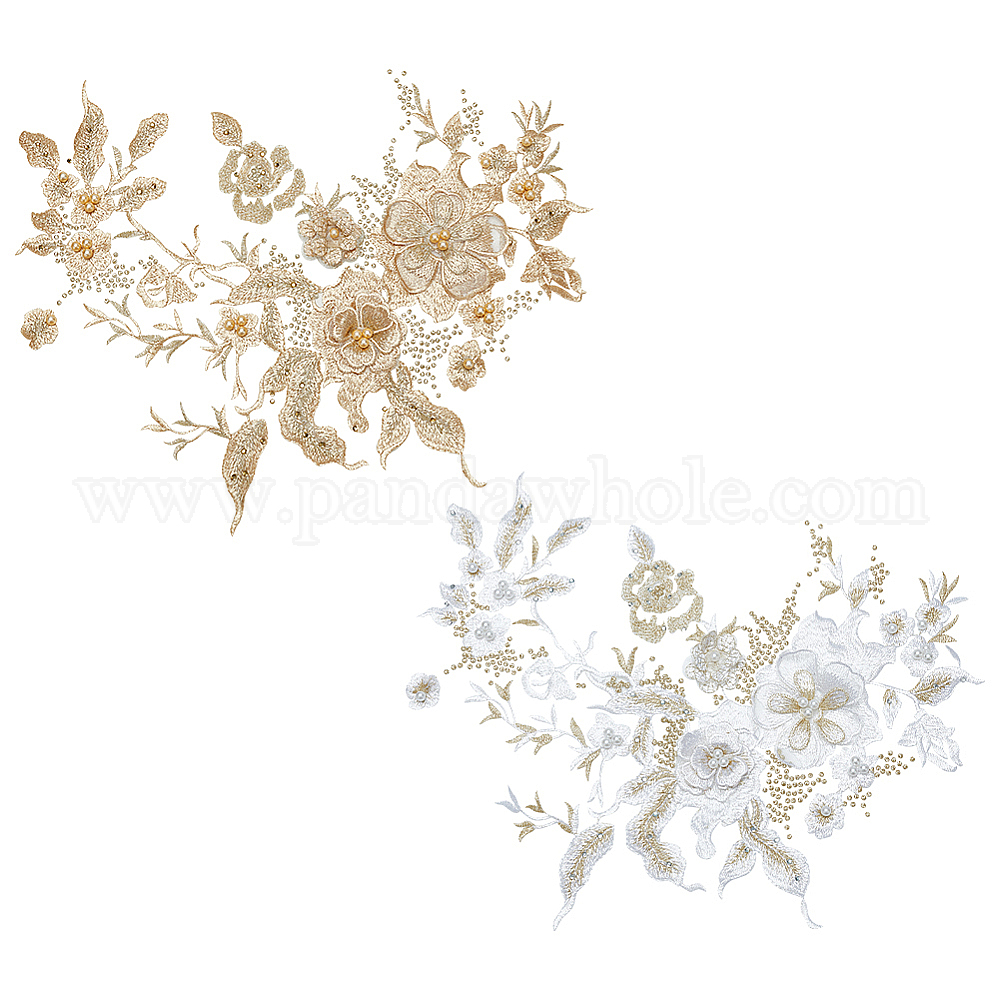 2 шт 2 цвета компьютерная вышивка полиэстер орнамент аксессуары, 3d цветочные кружевные аппликации, с имитацией жемчуга (02P4W9)