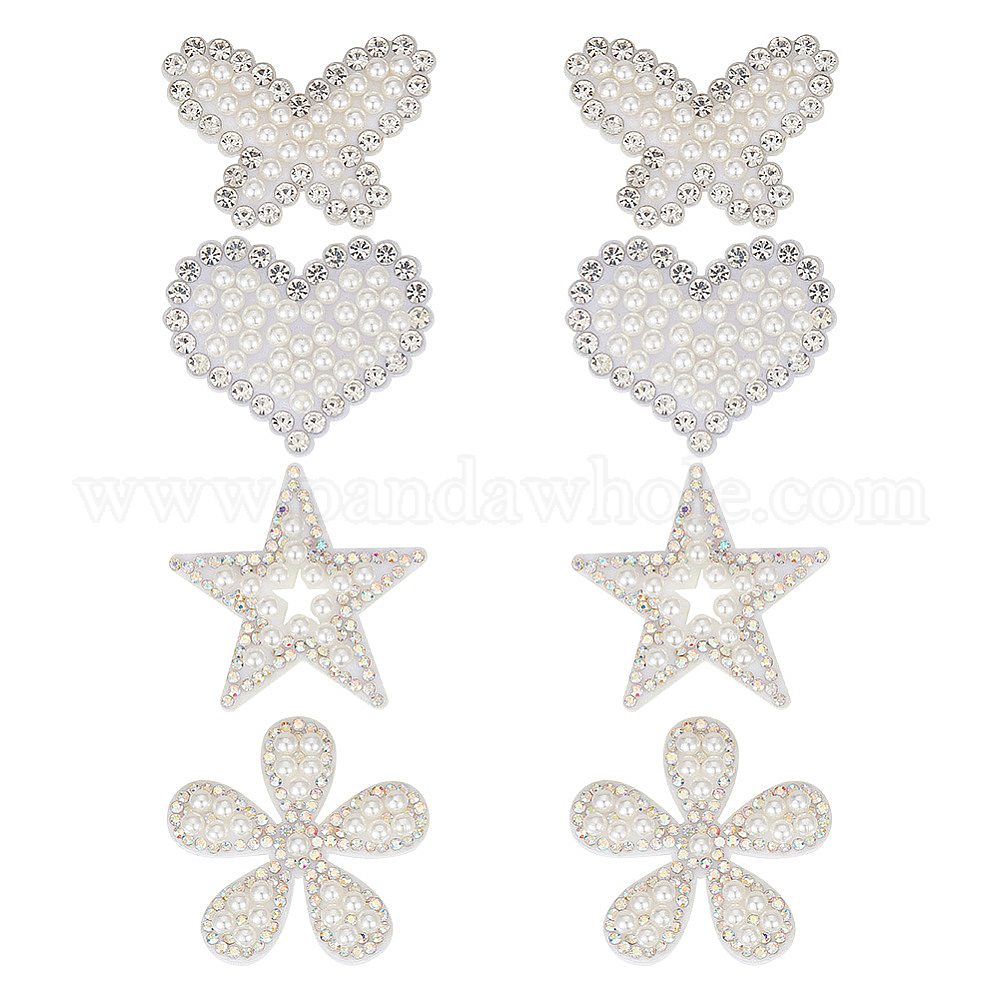 • Белый 8шт 4 стили аппликации из нетканого материала в виде звезд/цветов/сердец/бабочек, Пластиковые аксессуары для украшений из искусственного жемчуга и стразов, белые, 32~40x41~44x5 мм, 2 шт / стиль
