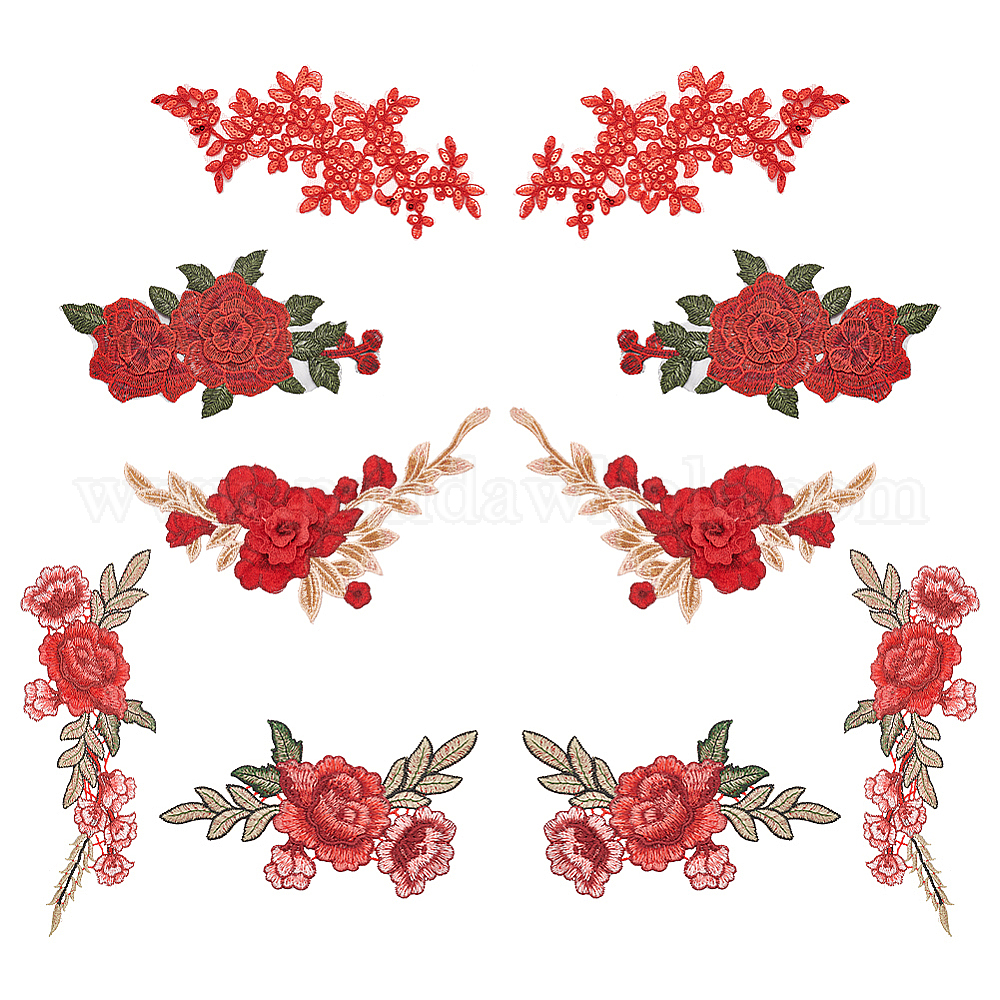 • Красный 5 пары 5 стиль 3d цветочные аппликации, Компьютеризированная вышивка на ткани для пришивания украшений и аксессуаров, красные, 220~310x100~135x0.8~4 мм, 1 пара / стиль