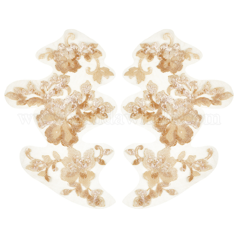 • Светло-коричневый 1 пара 3d цветочная вышивка из полиэстера пришитые аппликации, с пластиковой пайеткой/пайетками, украшение для свадебного платья своими руками, Cheongsam, загар, 295x195x0.1~1 мм