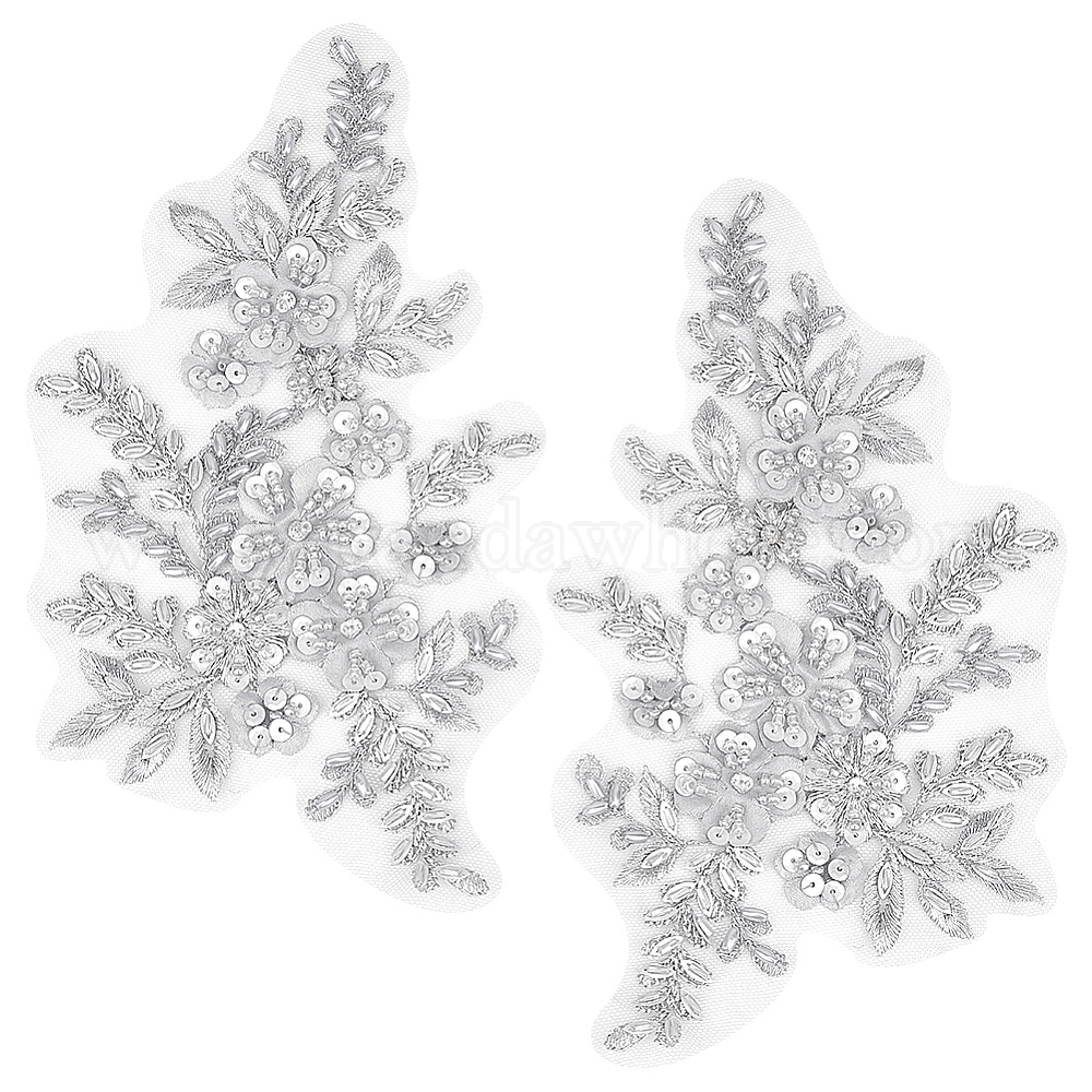 1 пара 3d цветочная вышивка из полиэстера пришитые аппликации, с пластиковыми бусинами и пайетками/пайетками, украшение для свадебного платья своими руками, Cheongsam