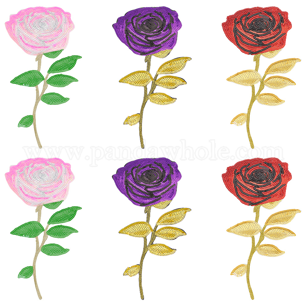 6 шт. 3 цвета роза цветок компьютерная вышивка полиэстер орнамент аксессуары, пайетка ткань утюг на заплатках