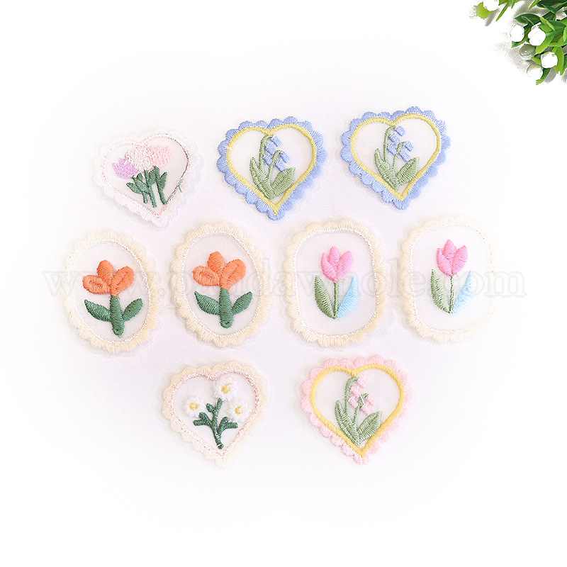 Хлопок в стиле вышивки с цветочной вышивкой и пришить заплатки, аппликация, значки, с золотым ободком, для одежды