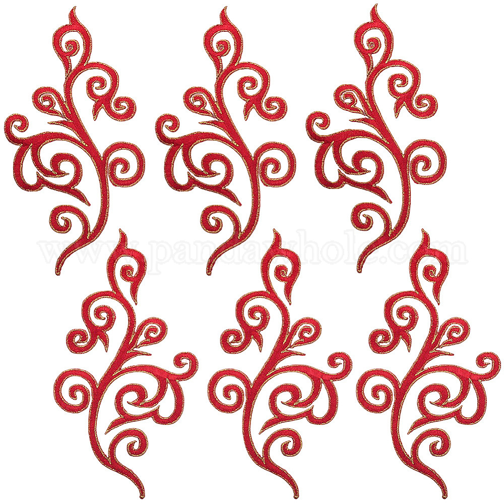 • Красный Этнический стиль цветочный узор компьютерная вышивка аппликации, металлические нити для вышивки утюгом на украшениях аксессуары, красные, 175~177x88~89x1 мм