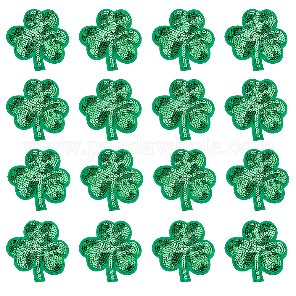 20 шт. аппликации из нетканого материала ко Дню Святого Патрика с изображением клевера, с пайетками из ПВХ, аксессуары для костюма, швейные украшения