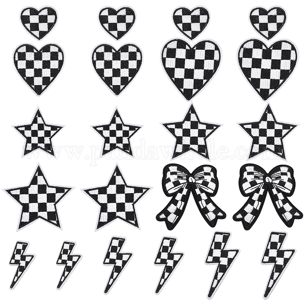 20 шт. 10 стили полиэстеровая блестящая пряжа черно-белая клетка вышивка ткань орнамент аксессуары, термоклей, шотландка