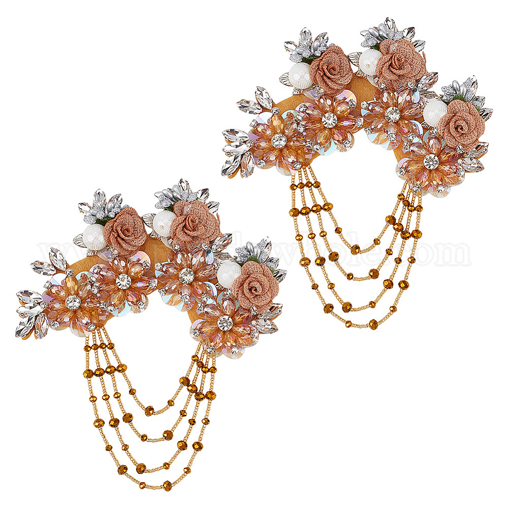 2 шт. тканевые лоскуты с цветочным узором и бисером, со стеклом, аксессуары для костюма, швейные украшения (033SN8)