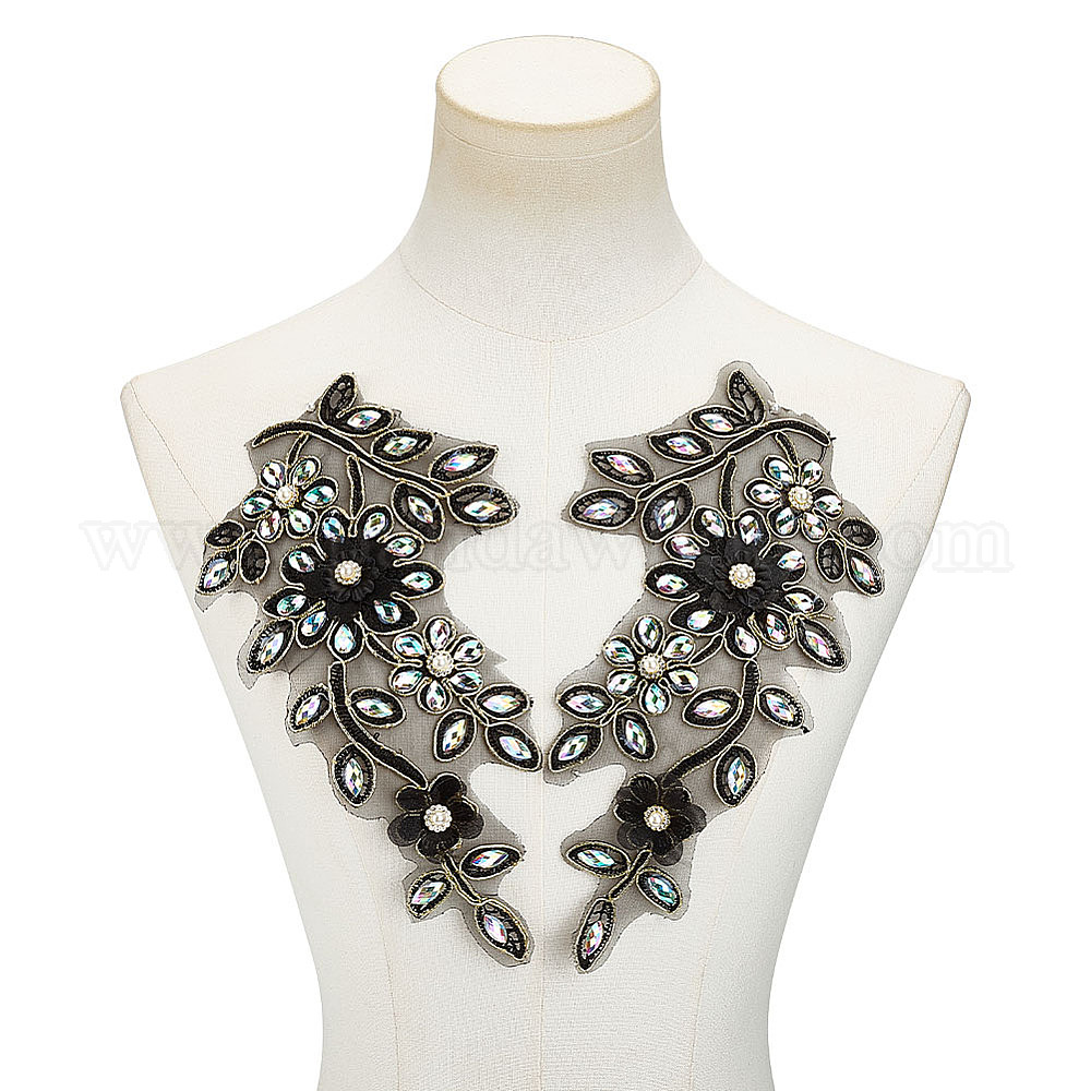 2 шт. 2 стили: цветы, полиэстер, стекло и пластик, жемчужная вышивка, пришивные украшения, аксессуары, швейные украшения