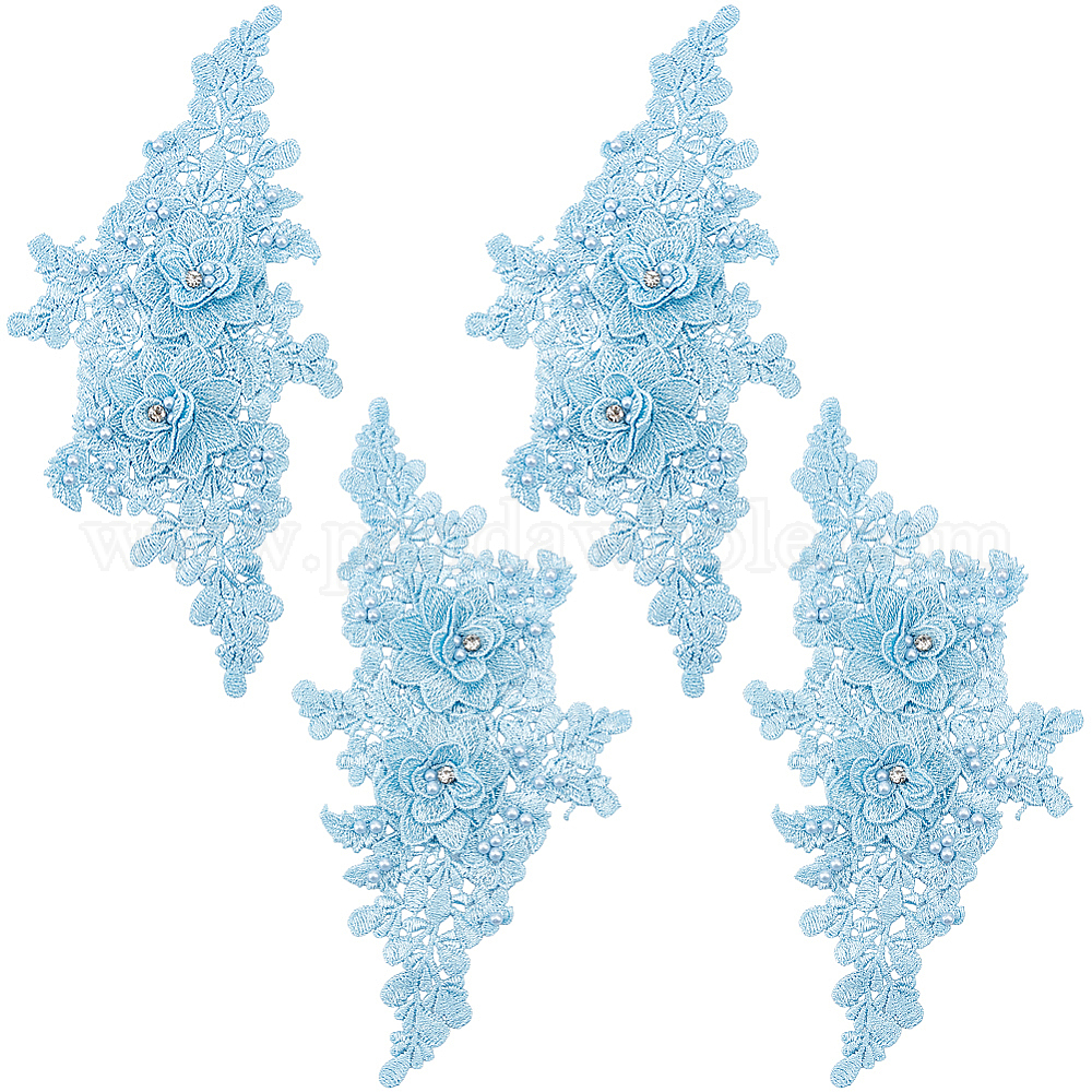 2 Пары полиэстеровых вышитых аксессуаров для костюмов, аппликация патч, швейные украшения, со стразами и искусственным жемчугом, цветок