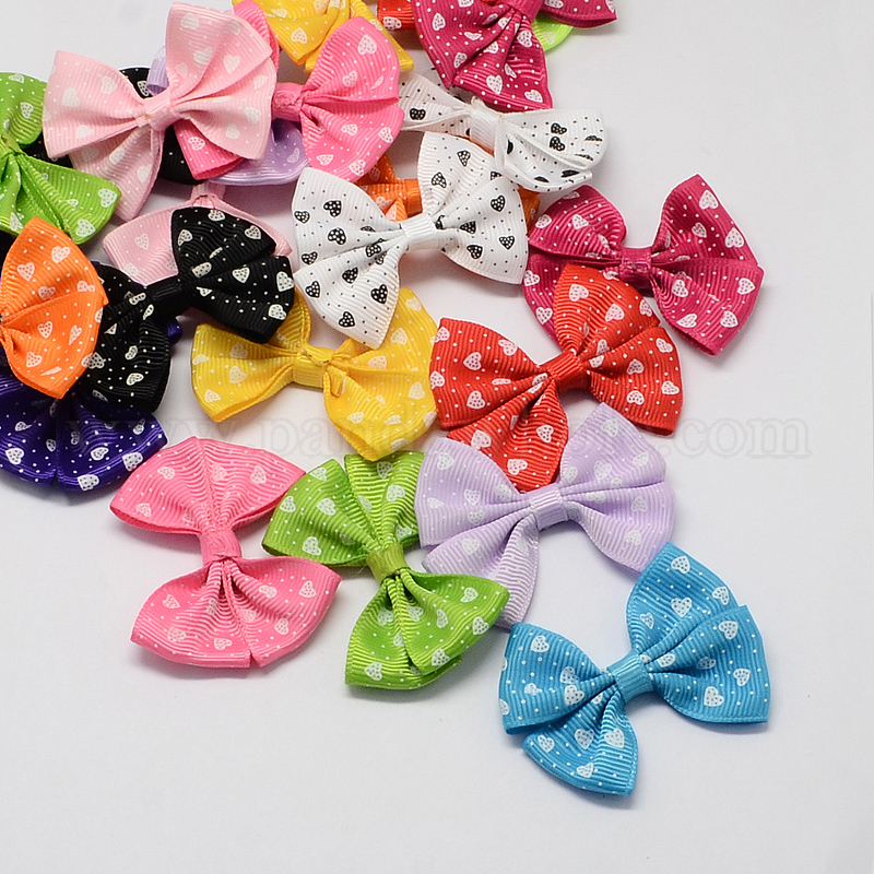 Аксессуары костюма из ткани, Сердце печатных Grosgrain бантом, 43x56x8 мм , около 200 шт / мешок
