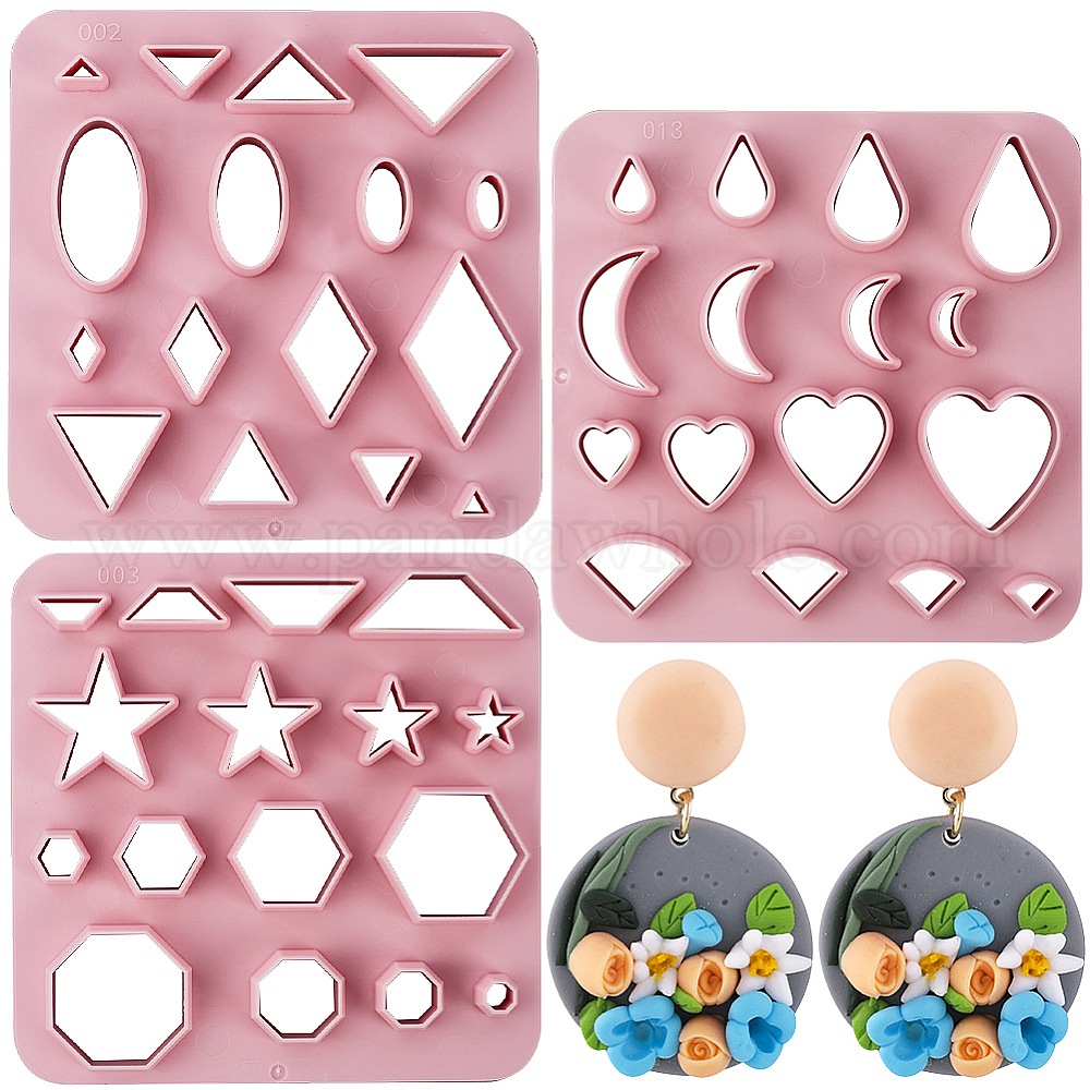3шт 3 стиль треугольник/шестиугольник/сердце АБС пластик пластилин инструменты, резцы глины, инструменты моделирования, розовые