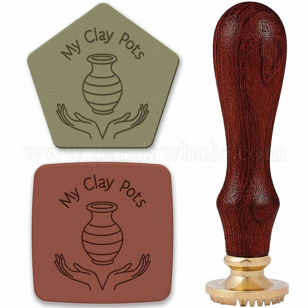 Набор печатей из латуни и глины, 1ПК золотистый тон пломбировочный штамп цельная латунная головка, с деревянной ручкой из поликарбоната, для уникальных отпечатков на керамике и других мягких материалах