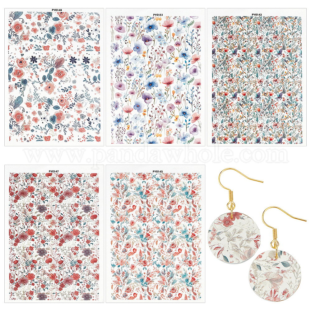 5 шт. 5 стили цветочный узор керамика глина вода переводная бумага, переводные декали под глазурью, для сережек-подвесок своими руками