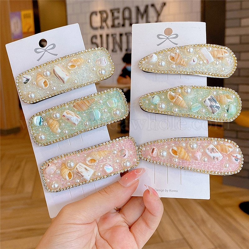Заколки для волос с ракушками и жемчугом для женщин и девочек, слеза/прямоугольник (02W229)