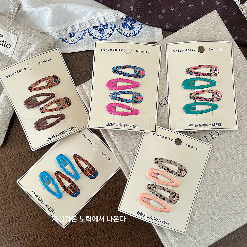 Заколки-клеш с леопардовым принтом и эмалированными кнопками