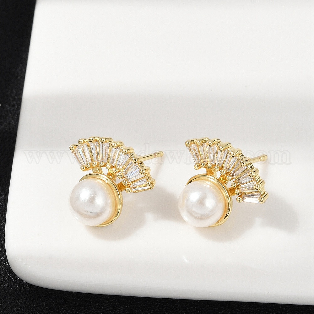 Клипсы из латуни с микропаве из прозрачных кубических цирконий, с абс пластмассовыми шариками, без свинца и без кадмия, долговечный