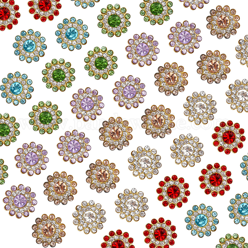 120 шт. 6 цветные кнопки со стразами из сплава, цветок, золотые