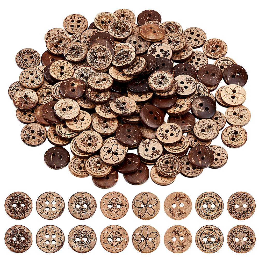 160 шт. 8 стили 2 пуговицы из натурального кокоса с отверстием, плоские круглые с цветком