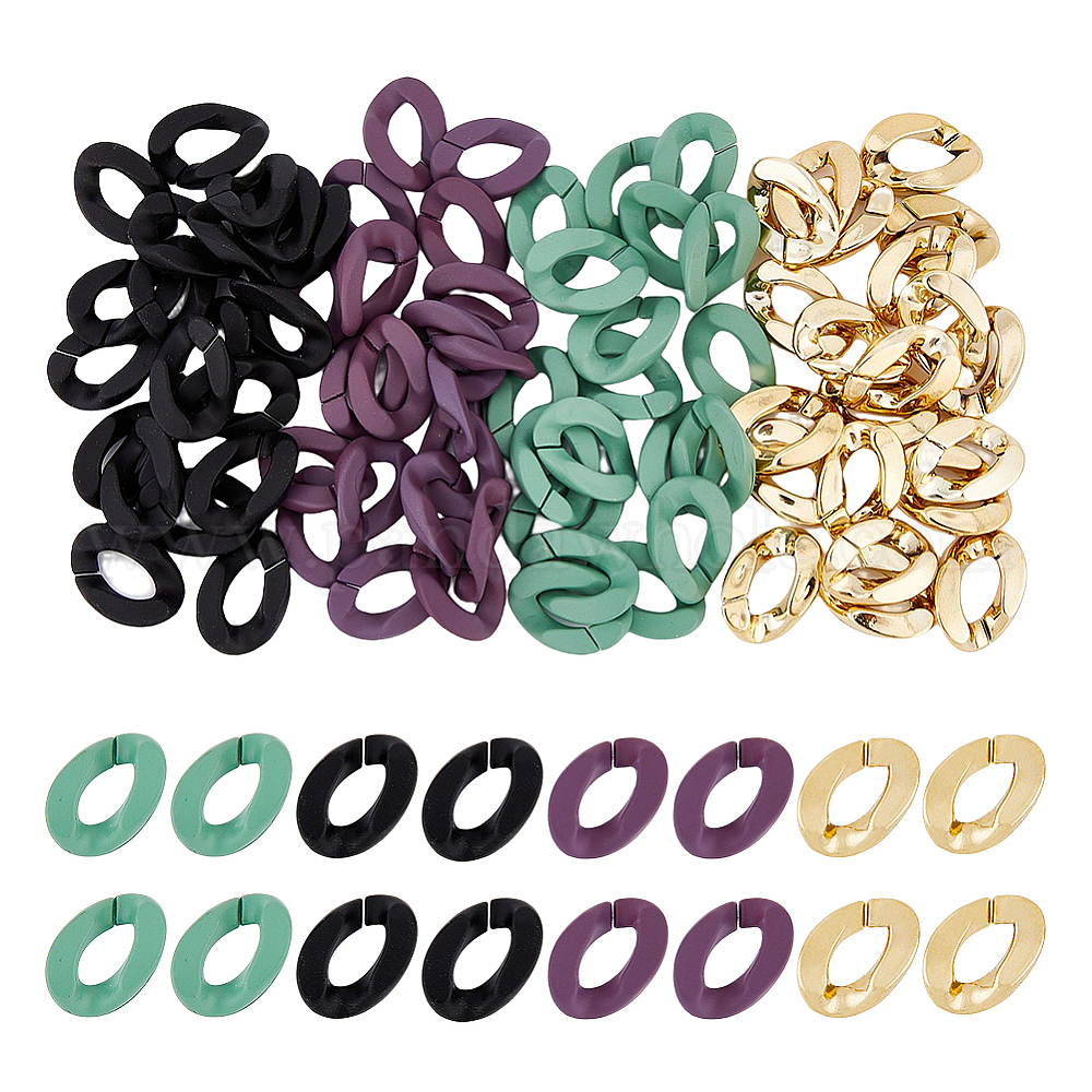 • (52) Непрозрачная лаванда Соединительные кольца из окрашенного распылением АБС-пластика и акрила, разъемы для быстрой связи, для изготовления ювелирных звеньев бордюрных цепочек, твист, разноцветные, 30x21x6 мм, внутренний диаметр: 16x8 мм, 120 шт / коробка