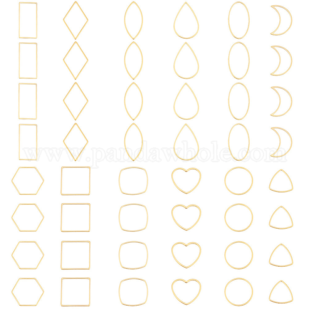 48 шт. 12 стиль 304 соединительные кольца из нержавеющей стали, конский глаз и овал и квадрат и прямоугольник и луна и треугольник и ромб и капля и сердце и круглое кольцо и шестиугольник