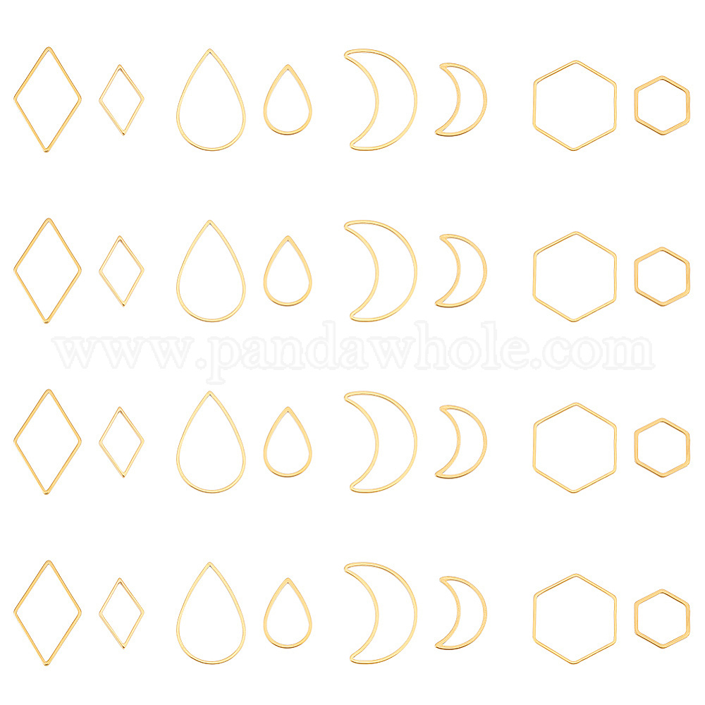 32 шт. 8 стиль 304 соединительные кольца из нержавеющей стали, ромб и капля, шестиугольник и луна