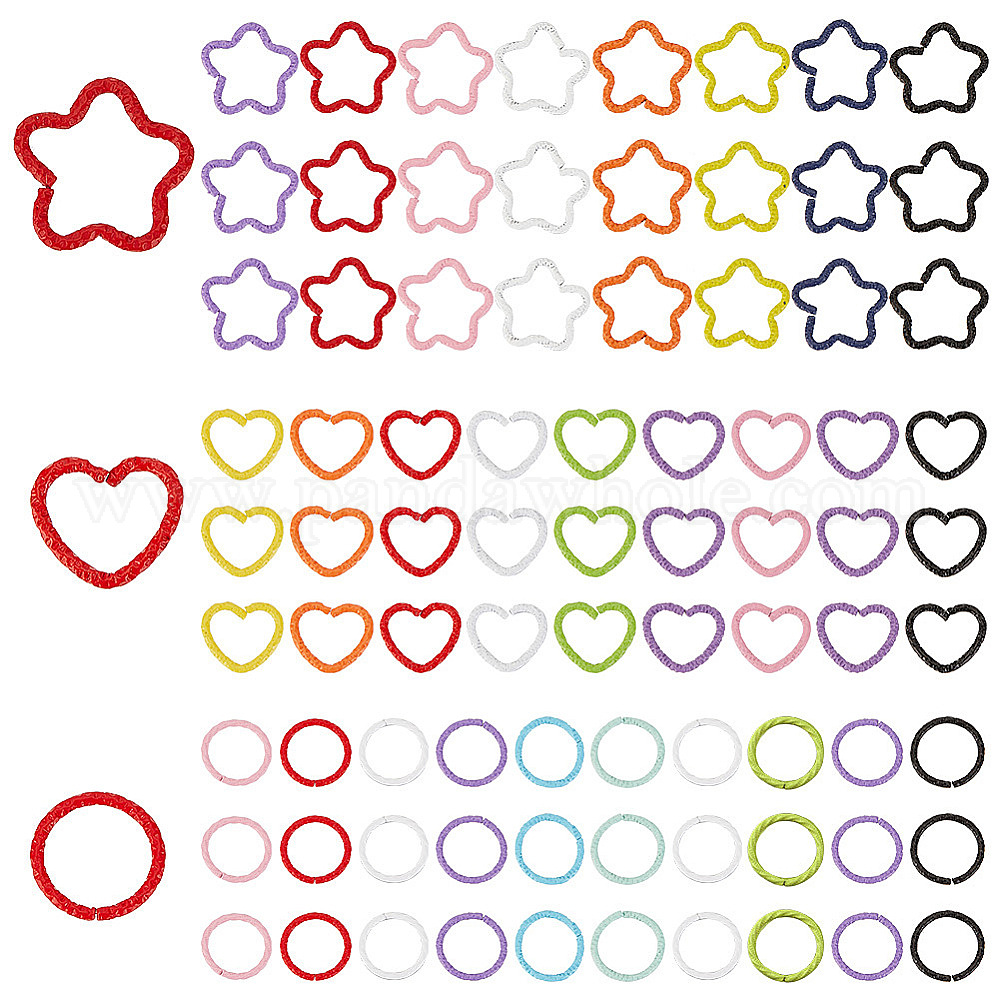 240 шт 24 стили запекание окрашенные железные соединительные кольца, кованое открытое кольцо, сердце и звезда и круглое кольцо