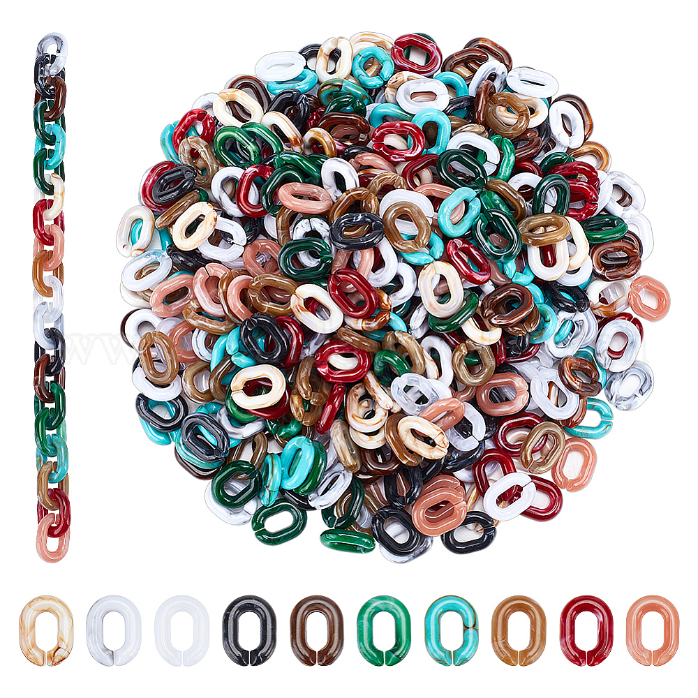 400 шт 10 цвета акриловые соединительные кольца, разъемы для быстрой связи, для изготовления ювелирных цепочек, Стиль имитация драгоценных камней, овальные