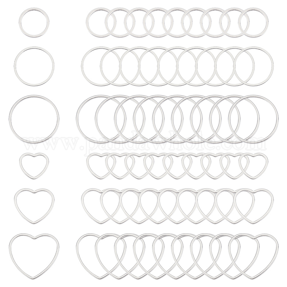 60 шт. 6 стили 304 соединительное кольцо из нержавеющей стали, круглое кольцо и разъем в форме сердца