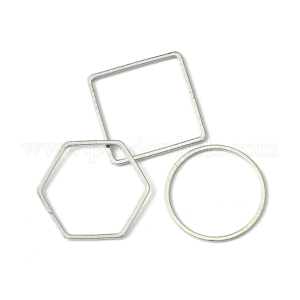 60шт. 3 стили латунные соединительные кольца, квадрат, кольцо и шестиугольник, разнообразные