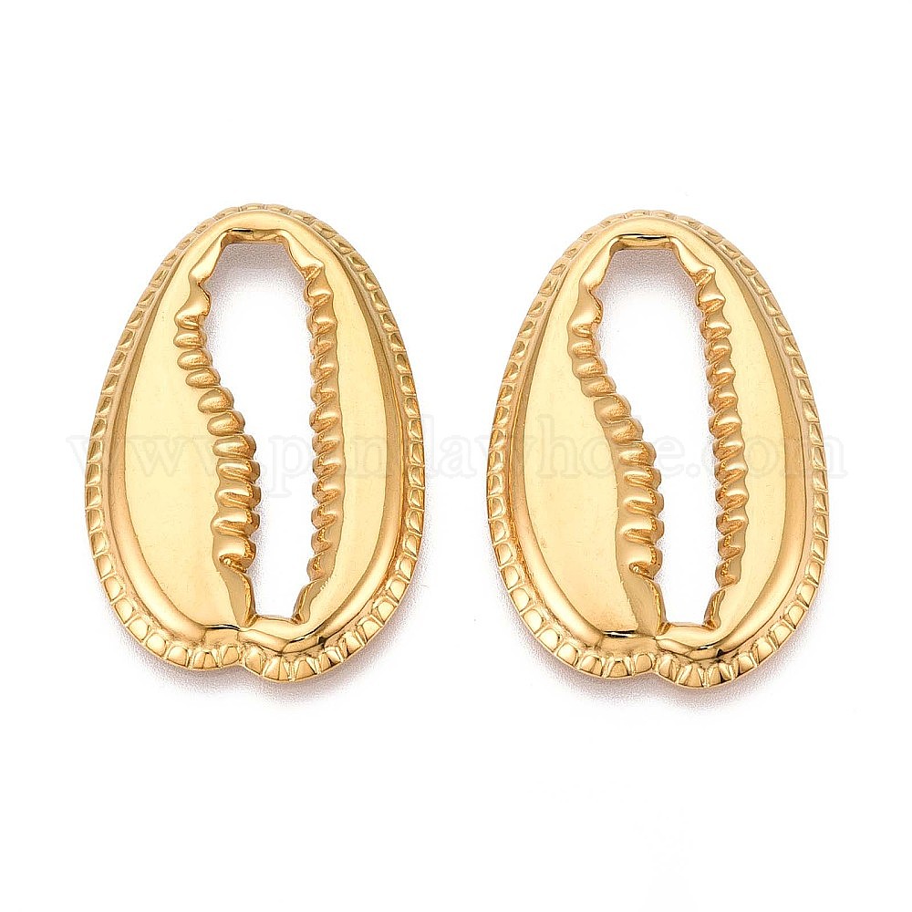 • Настоящее золото 18K 304 нержавеющей стали связывающий кольца, формы раковины, ионное покрытие (ip), реальный 18 k позолоченный, 43.5x28x3.5 мм