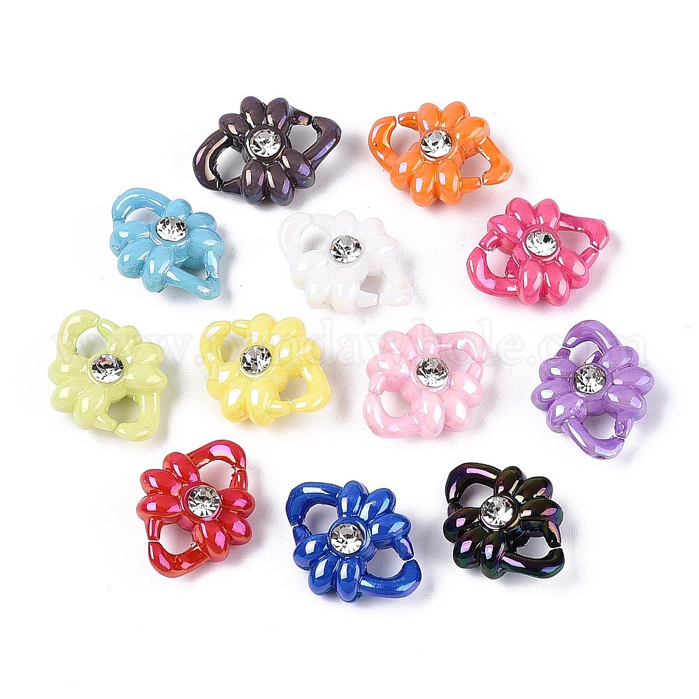 Кольца-связки из непрозрачного акрила с кристаллами и стразами, покрытые УФ-лаком, разъемы для быстрой связи, жемчужные, для изготовления бордюрных цепей, бантом