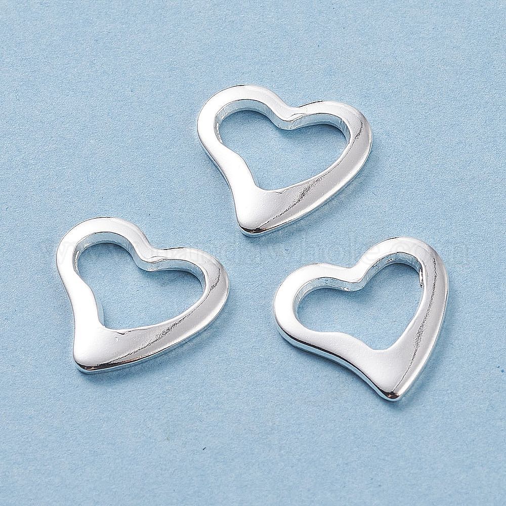 • Серебро 201 нержавеющей стали связывающий кольца, сердце, серебряные, 14.5x15x1.5 мм, Внутренние размеры: 11x6 mm