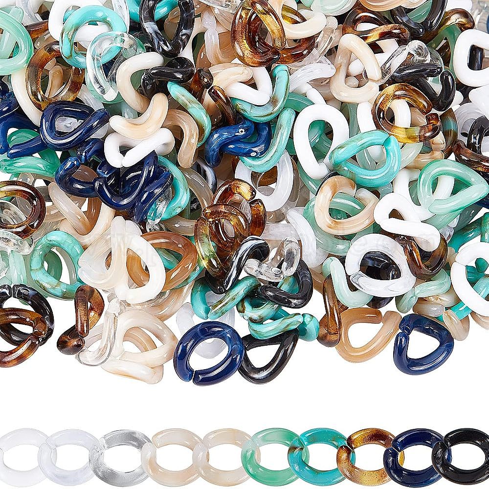 акриловые соединительные кольца в виде скрученных имитаций драгоценных камней: 15.5x13.5x6 мм, внутренний диаметр: 9x6 мм, 7 цветов, 50 шт / цвет, 350 шт;