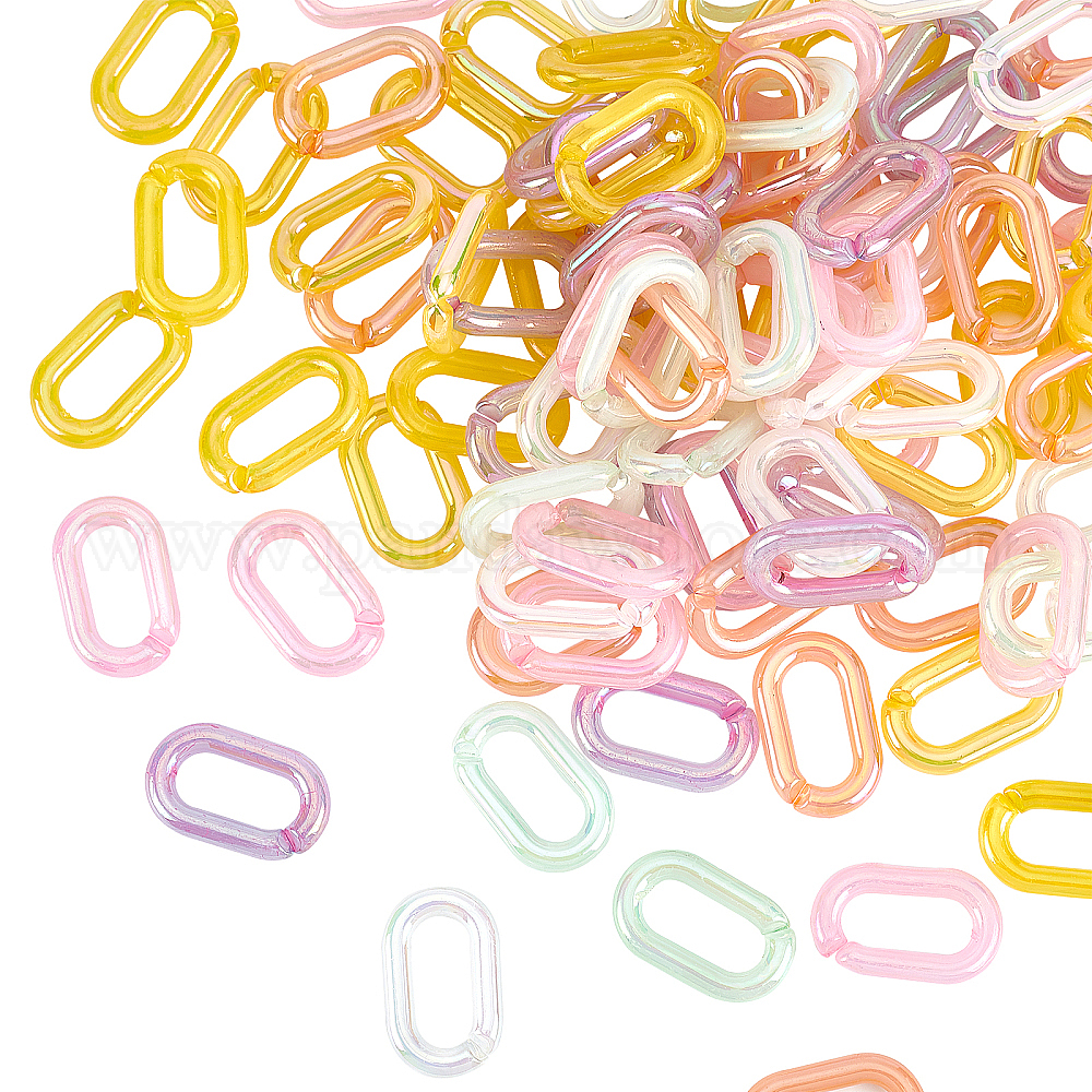 120 шт 6 цвета прозрачные акриловые соединительные кольца, разъемы для быстрой связи, для изготовления ювелирных цепочек, с покрытием AB цвета, Стиль имитация драгоценных камней, овальные