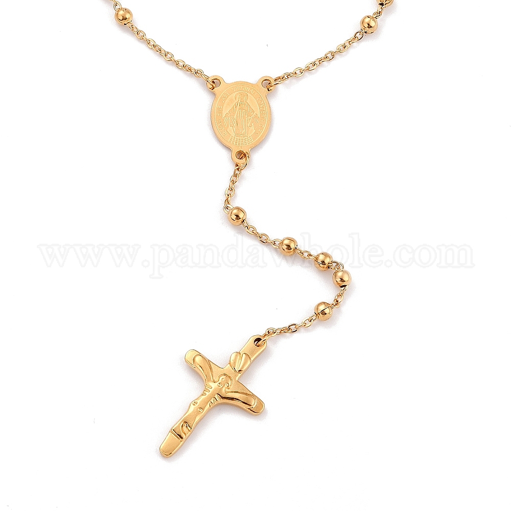 304 из нержавеющей стали ожерелья розария шарик для пасхи, с овальными подвесками со звеном Девы Марии и крестом-распятием