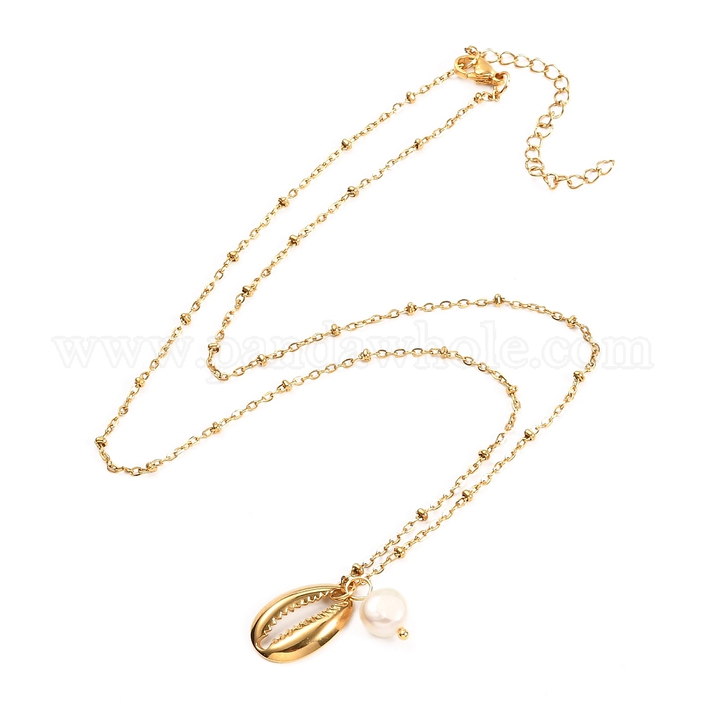 Ожерелье с подвеской из раковины каури и натурального жемчуга для девочек-подростков