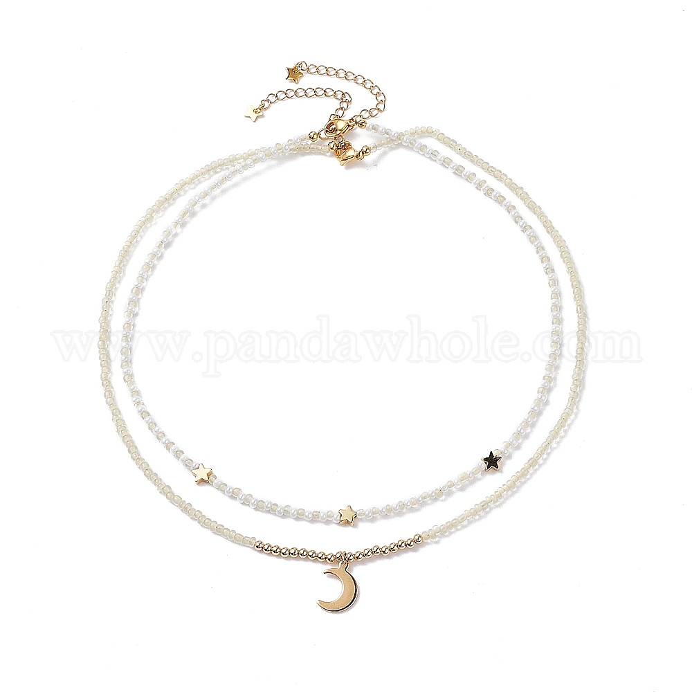 • Шампанско-Желтый Набор ожерелий с подвесками в виде звезды и луны для девочек-подростков, ожерелья из прозрачного хрусталя, золотые, шампанское желтый, 17.72 дюйм (45 см), 15.63 дюйм (39.7 см), 2 шт / комплект