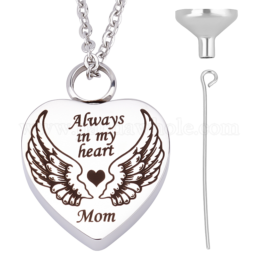 Всегда в моем сердце ожерелье с подвеской в форме крыла, сердце пепел урна мемориальное ожерелье, с мини-воронкой из нержавеющей стали