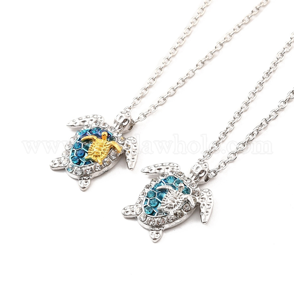 Ожерелье с подвеской в виде морских черепах с аквамарином и стразами для женщин