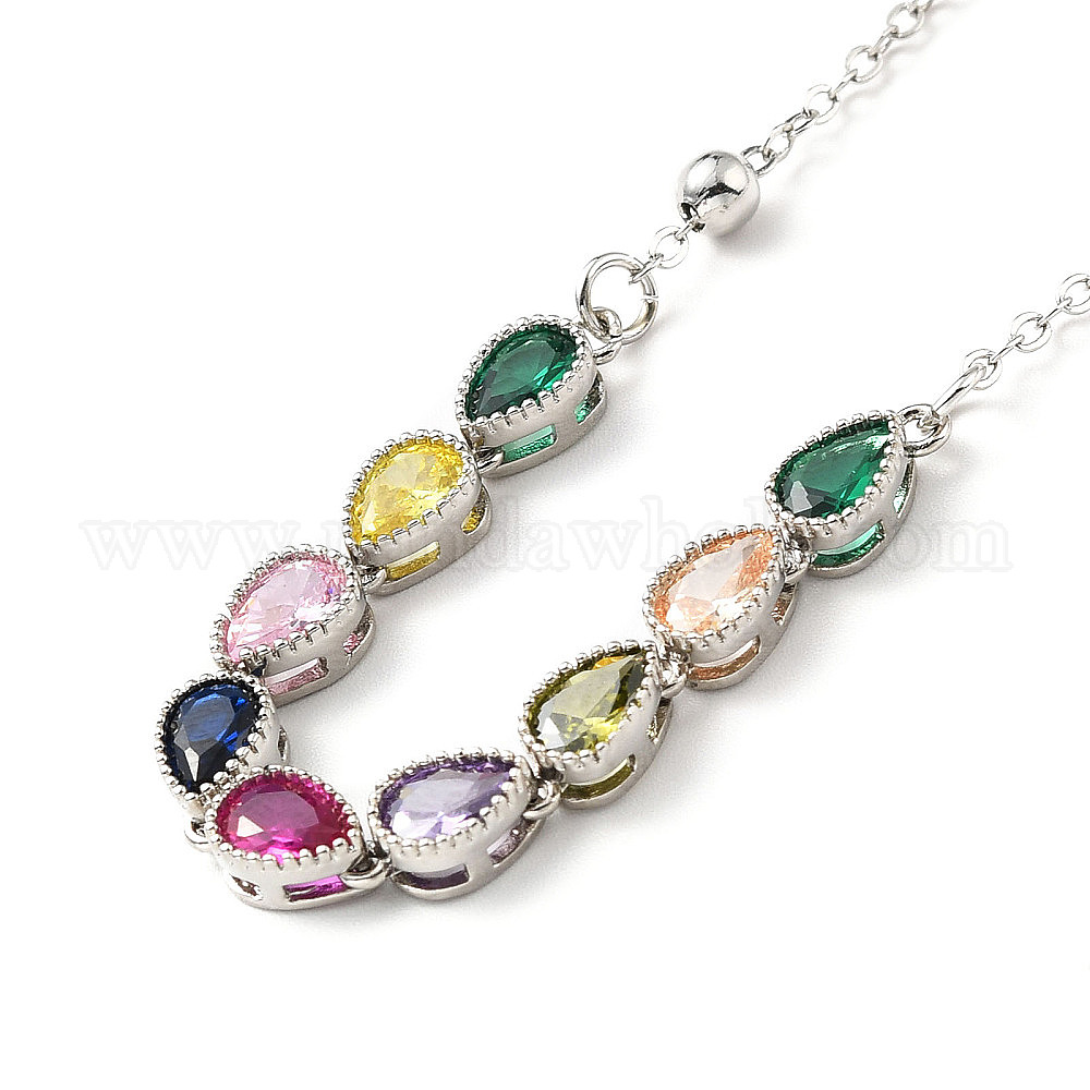 Красочное ожерелье с подвеской в форме слезы из кубического циркония, украшения из латуни для женщин