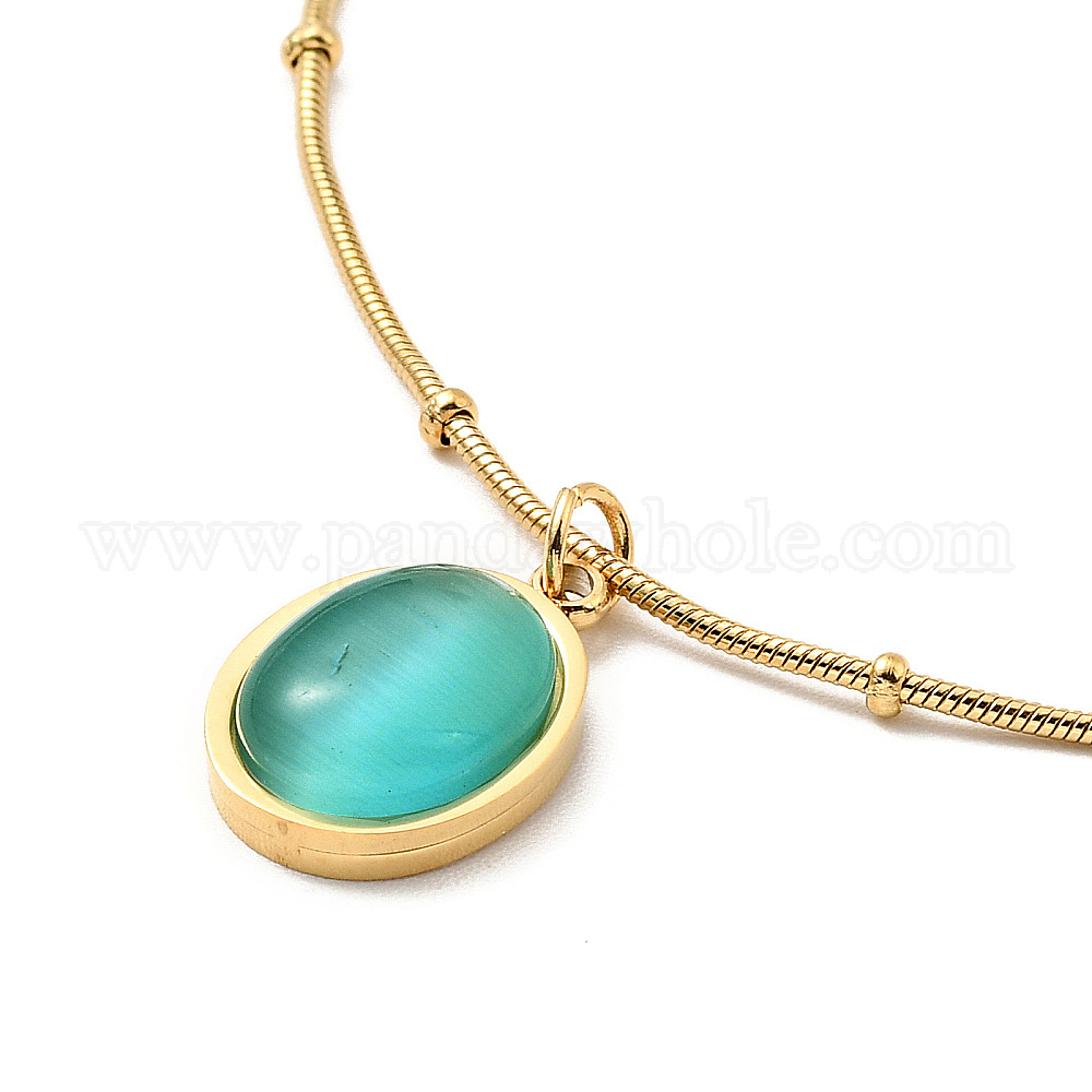 Овальное колье с имитацией кошачьего глаза и круглыми змеиными цепочками, ионное покрытие (ip) 304 ювелирные изделия из нержавеющей стали для женщин