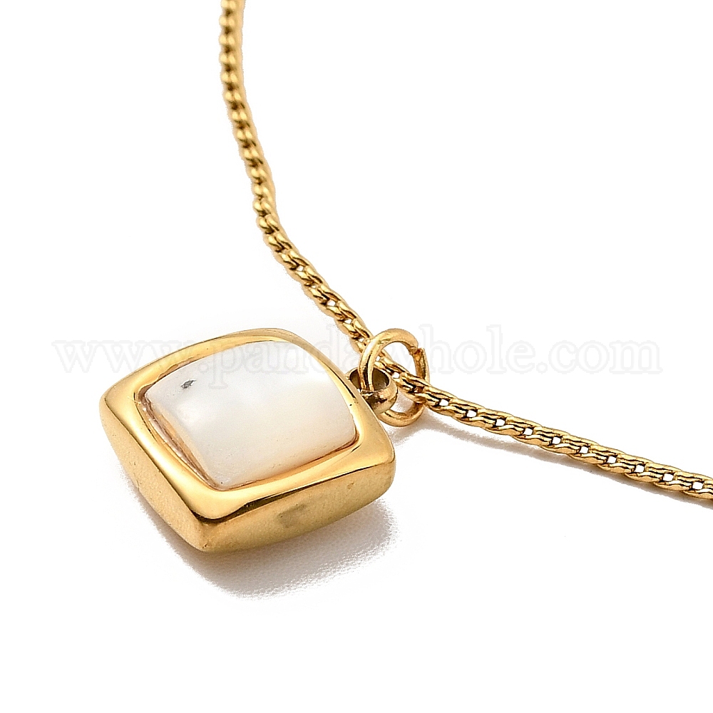Колье с квадратной подвеской из синтетической ракушки, ионное покрытие (ip) 304 ювелирные изделия из нержавеющей стали для женщин (02FF1N)