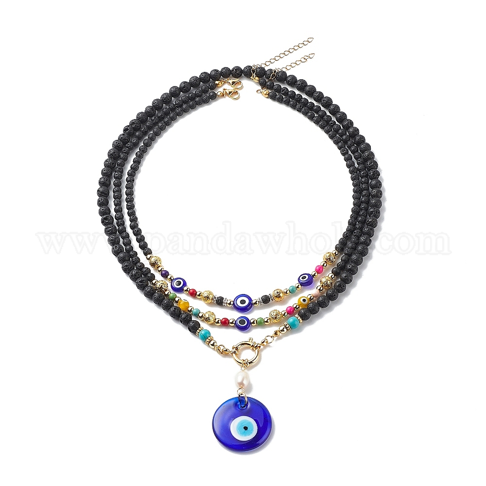 3шт 3 стиль лэмпворк набор ожерелий с подвеской от сглаза, составные ожерелья из натуральной лавы и жемчуга для женщин