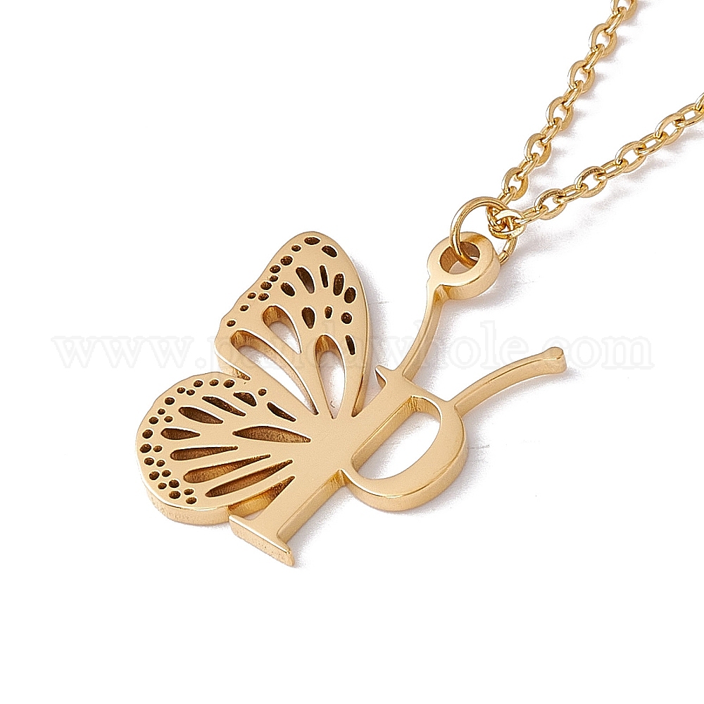• Letter P Колье с подвеской в виде бабочки, золотые украшения 304 из нержавеющей стали для женщин, letter.p, Кулон : 24x18x1 мм, 15.55 дюйм (39.5 см)